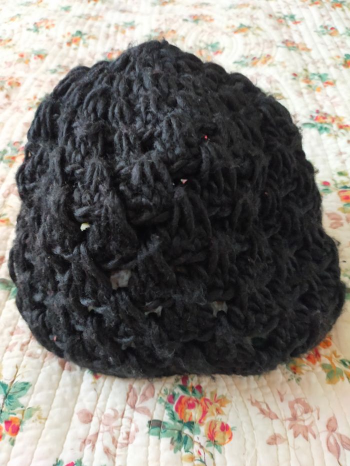 Bonnet fille Bon état, Taille unique, Sans étiquette, Couleur noir ,avec une fleur.