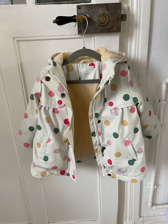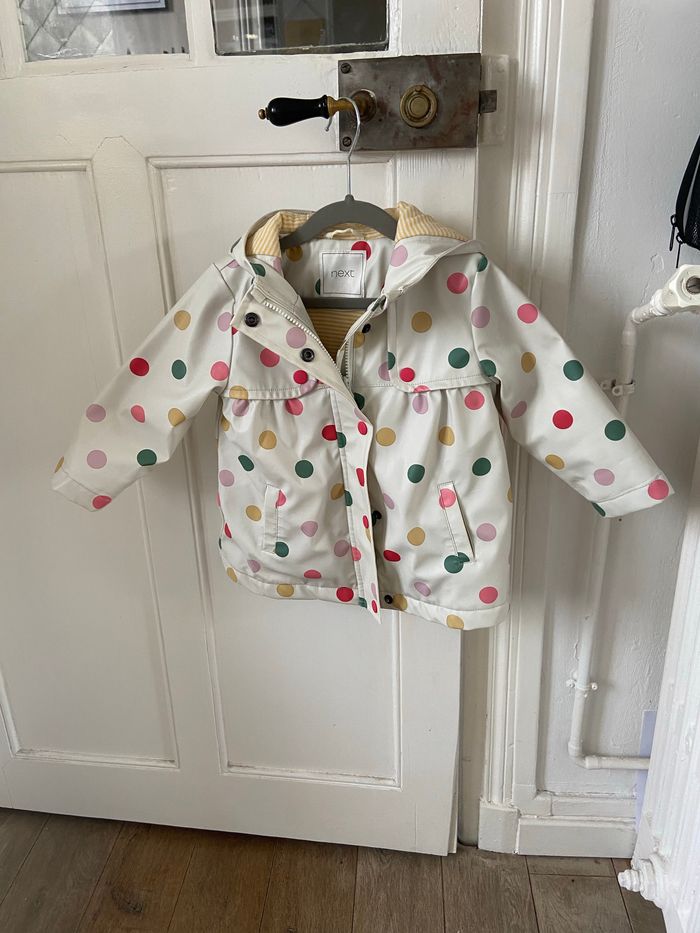 Manteau imperméable à pois doublé pour la mi-saison en très bon état - photo numéro 1