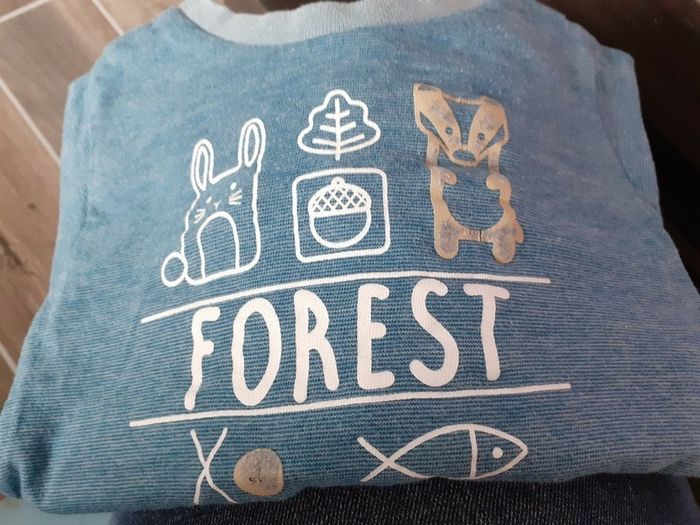 Tee-shirt a manches longues taille 6 mois, très légèrement bouloché, les motifs marron sont un peu abîmés Pour voir mes autres annonces taille 6 mois copie le # dans le moteur de recherche: #pauline44119taille6mois
