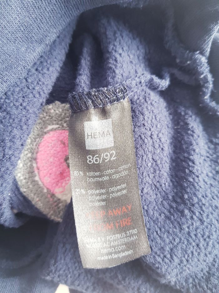 Tous mes articles Hema : #hemasev Tous mes pulls : #pullsev Tous mes habits fille 18 mois : #18moissevfille Tous mes habits fille 2 ans : #2anssevfille 🚨 Prix fixe Sweat / pull manches longues Marque : HEMA Couleur : bleu marine État : très bon état Taille : 18/24 mois - 86/92 cm 80% coton ; 20% polyester Retrait sur place ou envoi.