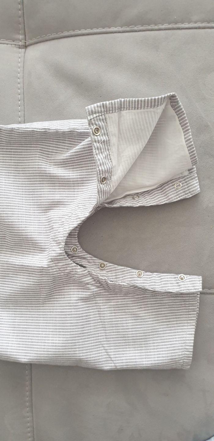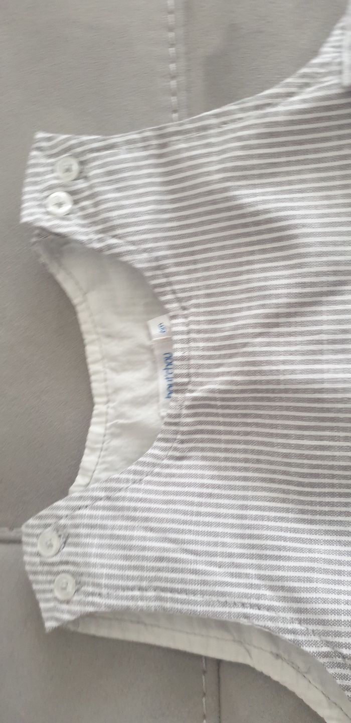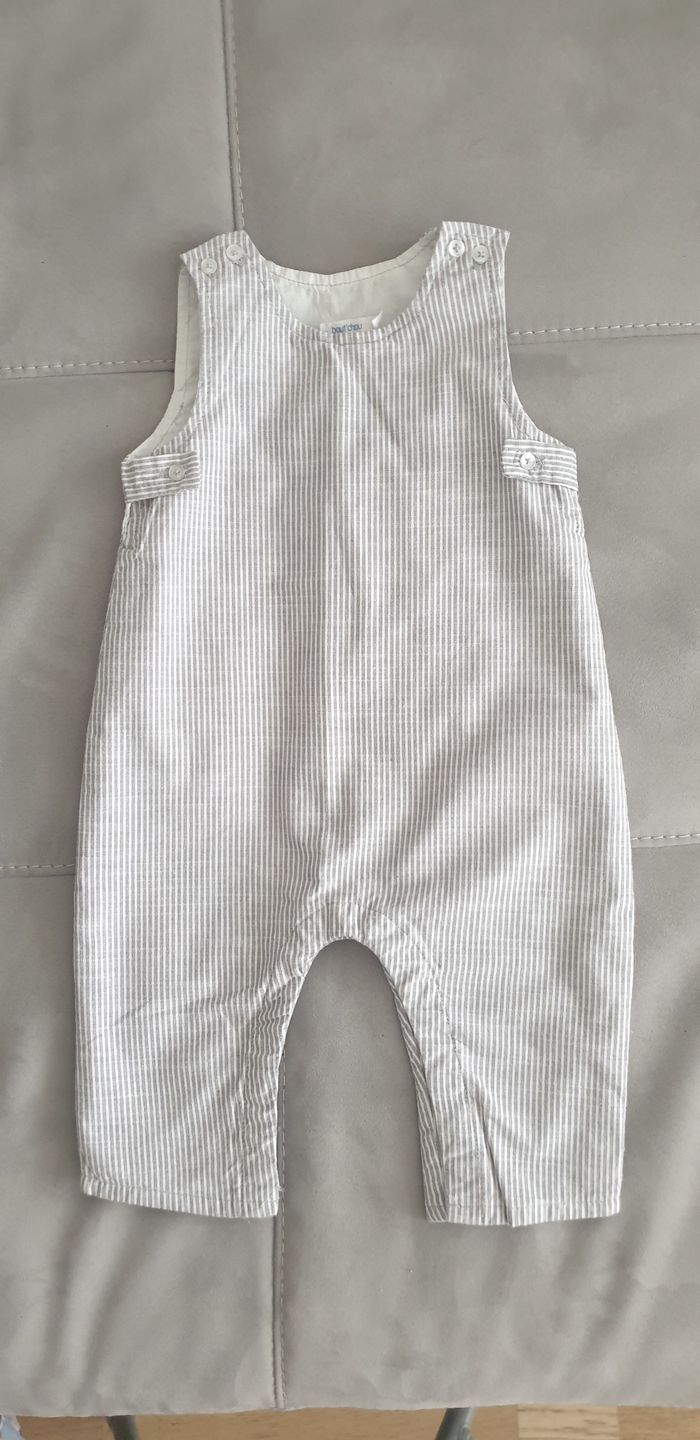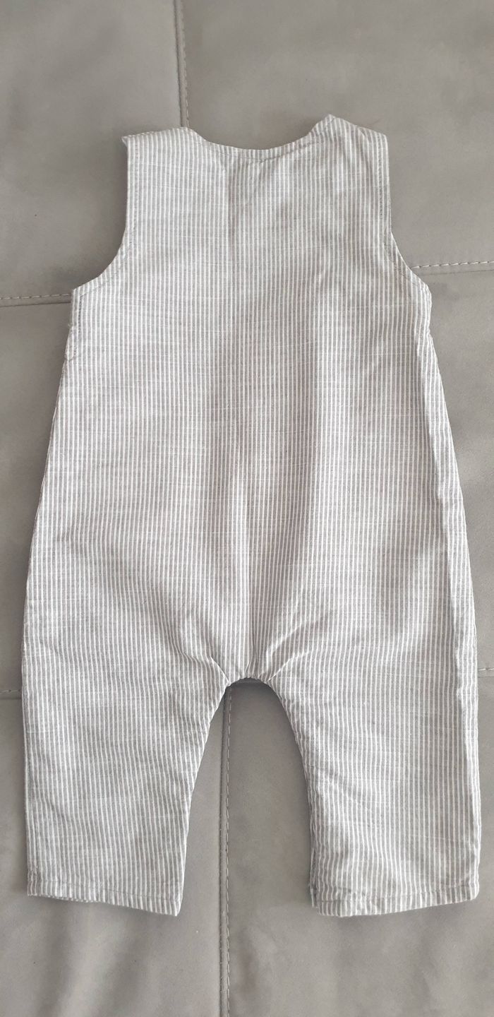 Salopette boutch'ou taille 6 moineuve sans étiquette Blanche avec bandes grises Idéal mi saison Boutons-pression a l'entrejambe pour faciliter le change