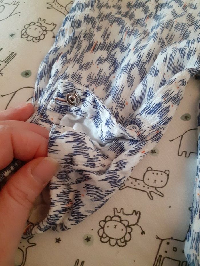 Combinaison sans manches,porté deux fois,Manque un côté de la pression tout en bas de la jambe gauche,taille 6 mois. Pour voir mes autres annonces taille 6 mois copie le # dans le moteur de recherche: #pauline44119Fille6mois