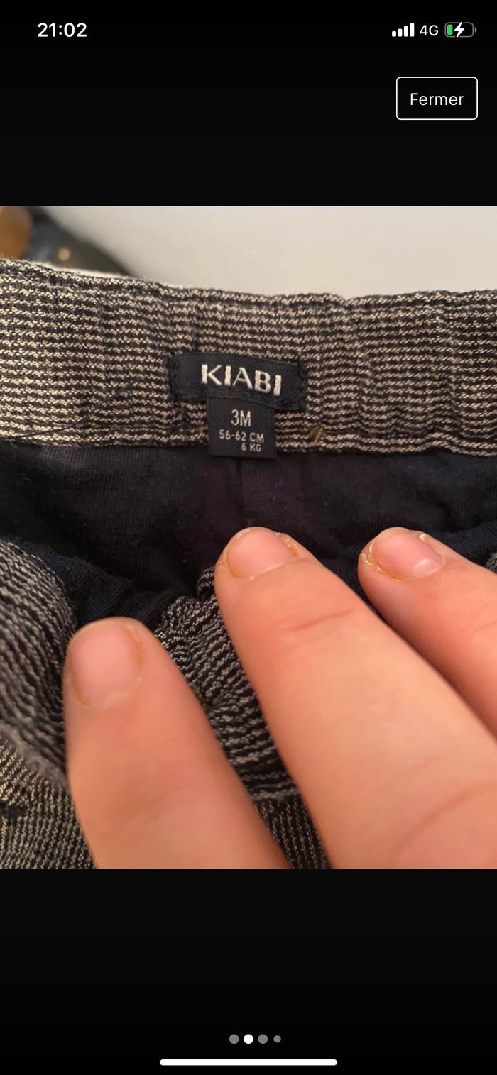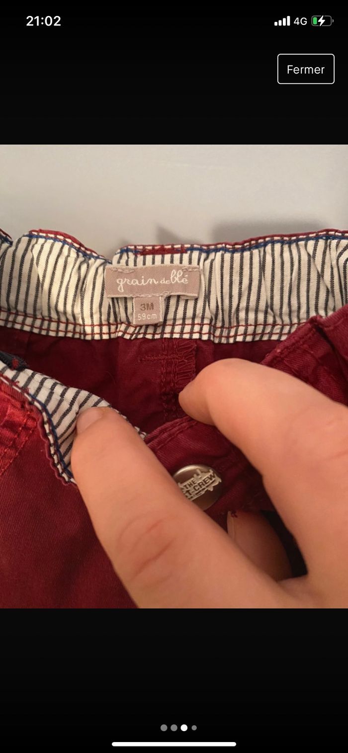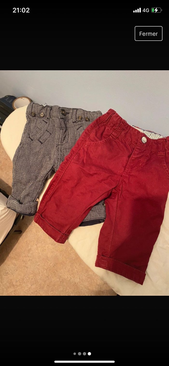 Pantalons 1 mois Bordeaux : grain de blé Bleu : kiabi Portés mais en bon état
