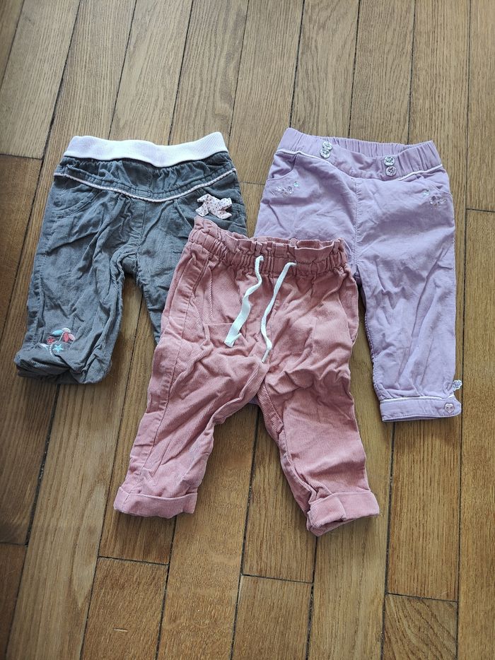 Lot de 3 pantalons velours fille 6 mois divers marques dont sergent major en bon état