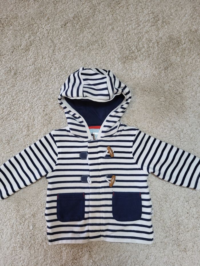 Veste à fermeture éclair marinière. Plutôt légère. Excellent état (très peu portée). Taille 3 mois