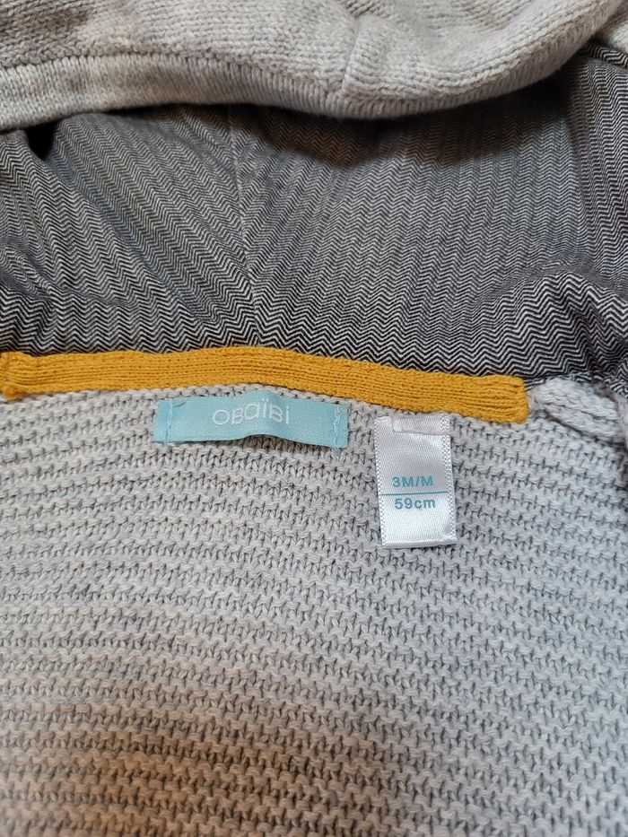 Gilet à capuche. Taille 3 mois. Excellent état (très peu porté).