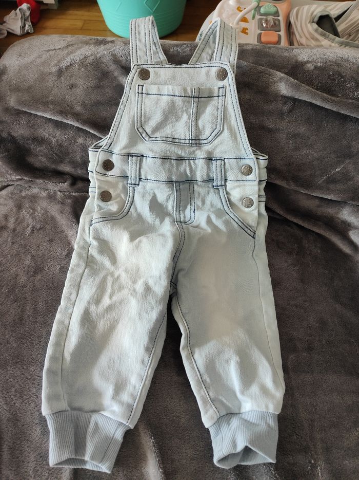 Salopette en jeans lupilu taille 6 mois bleu clair en très bon état