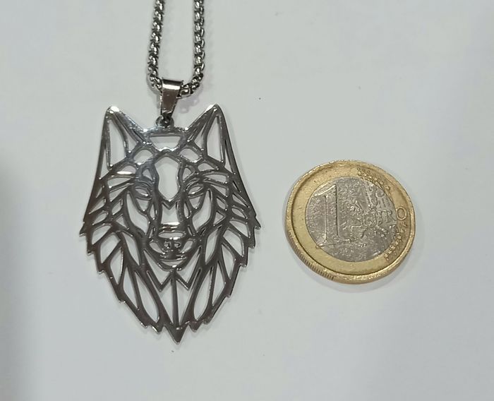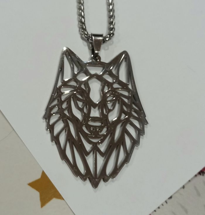 Collier tête de loup origami argenté - photo numéro 1