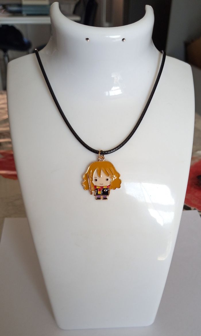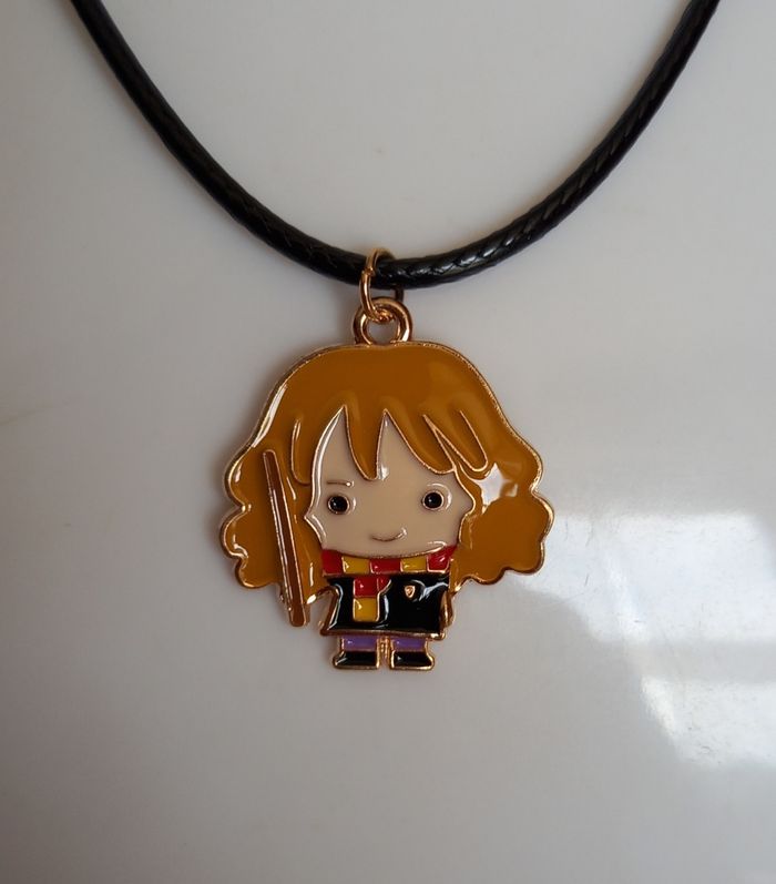 Cordelette noire de 42 cms. Dimensions du pendentif hermione : 2,5 x 2,2 cms. ( pendentif tout en metal). Collier neuf sous blister. N'hésitez pas à regarder mes autres ventes. Envoi rapide et soigné.