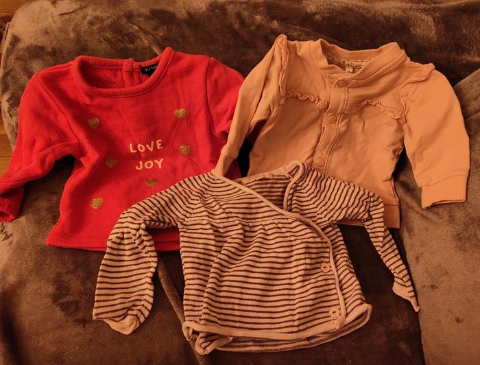 Lot avec un pull et deux gilets taille 6 mois en bon état Kiabi et autres