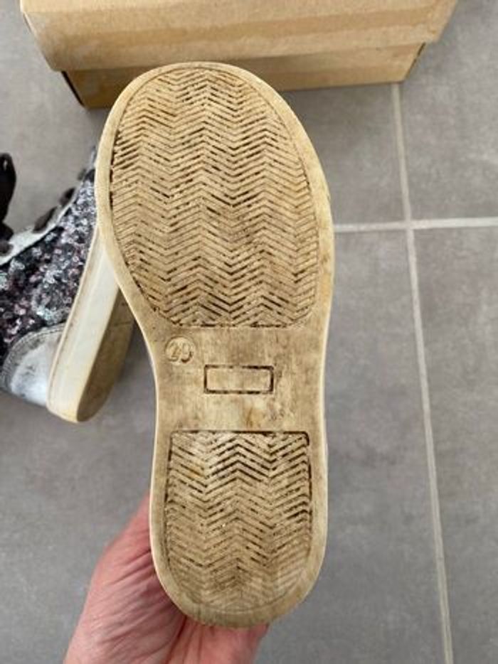 Porté. Abimé sur le dessus voir photo. En cuir. Super confortable. Acheté 100€ N’hésitez pas à me suivre car encore beaucoup de vêtements fille, des chaussures en cuir, des chaussons… (du 1 mois au 8 ans), des vêtements garçon (du 1 au 6 mois pour le moment ). Maison non-fumeurs et sans animaux même si je les adore. Il n'y aura pas de poils ou d'odeur désagréable. Vous recherchez quelques choses, demandez moi. Je réponds très rapidement. Bon shopping 😊.