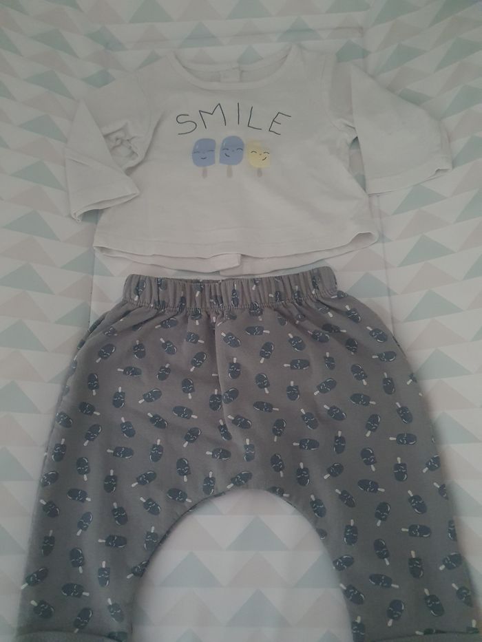 Ensemble verbaudet Comme neuf Avec bouton dans le dos du tee shirt Taille 3 mois Tenue très mimi