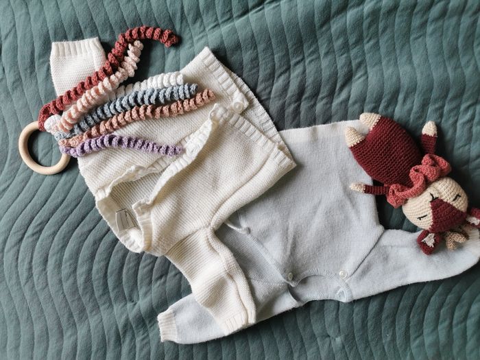 🌼Lot de deux gilet taille 1 mois 🌼Un blanc et un bleu clair 🌼Porté une fois en parfait état
