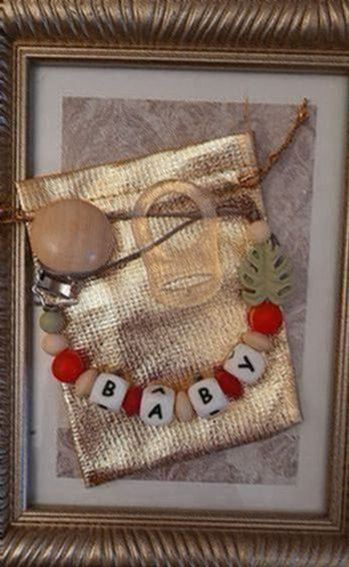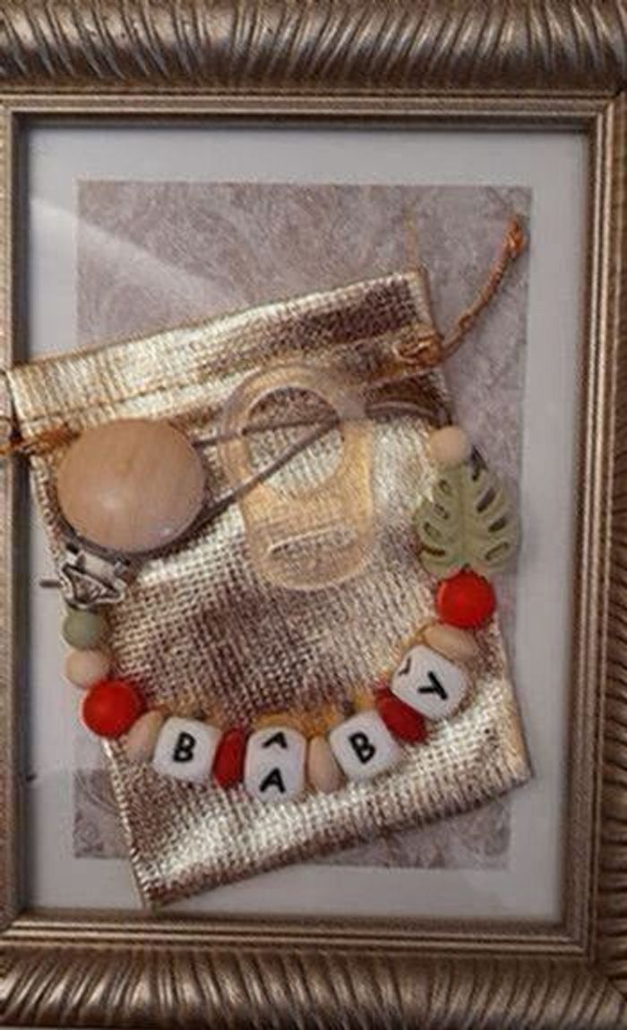 Attache tétine personnalisé avec le prénom de votre el utilisé est aux normes européennes . Perles en silicone ou en bois ou un mélange selon les modèles . En respectant les normes de sécurité pour bébé ,n'hésitez pas à regarder dans mon dressing il y a plusieurs modèles et aussi à m'envoyer un message pour plus d'informations. 🔴 une petite remarque pour les prénoms qui sont très long il y aura forcément moins de perles sur les cotés ou quelques changements sur le modèle c'est pour respecter les normes de sécurité pour bébé il y a une langueur à respecter merci pour votre compréhension. 🔴Aussi l'utilisation de l'attache doit être sous surveillance et toujours vérifier si l attache tétine est intacte et les nœuds sont toujours bien fermés pour la sécurité de nos boutchous. Je vous remercie pour la lecture de ces consignes.