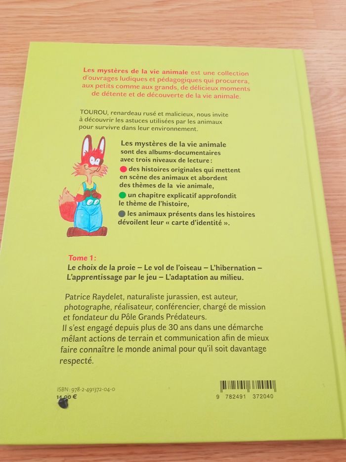 Vends un livre présenté par TOUROU le renard sous forme d histoires et donne une description d un animal