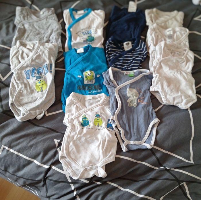 Bodies manches longues 1 mois. La plupart des bodies ont étaient portés une fois, voir pas du tout et certains ont un peu plus servi mais reste dans un état correct.