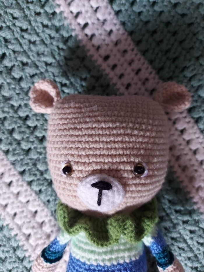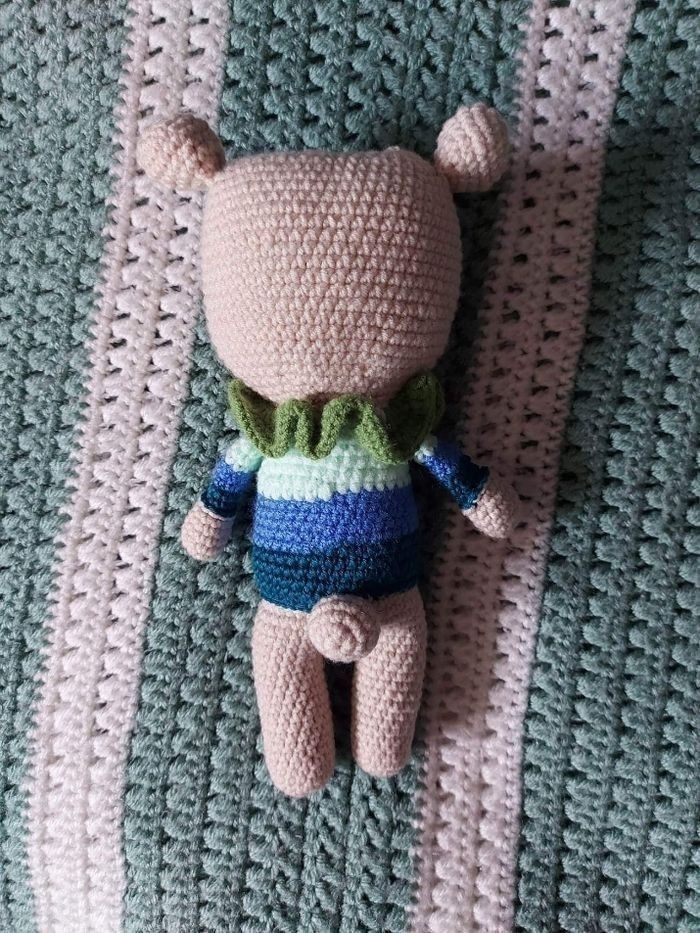 Doudou fait au crochet. Tout coton doux avec petit cube bruit léger dans la tête . Lavable en machine dans un filet, à 30 ° maxi.