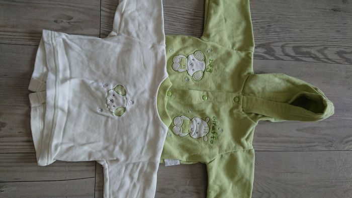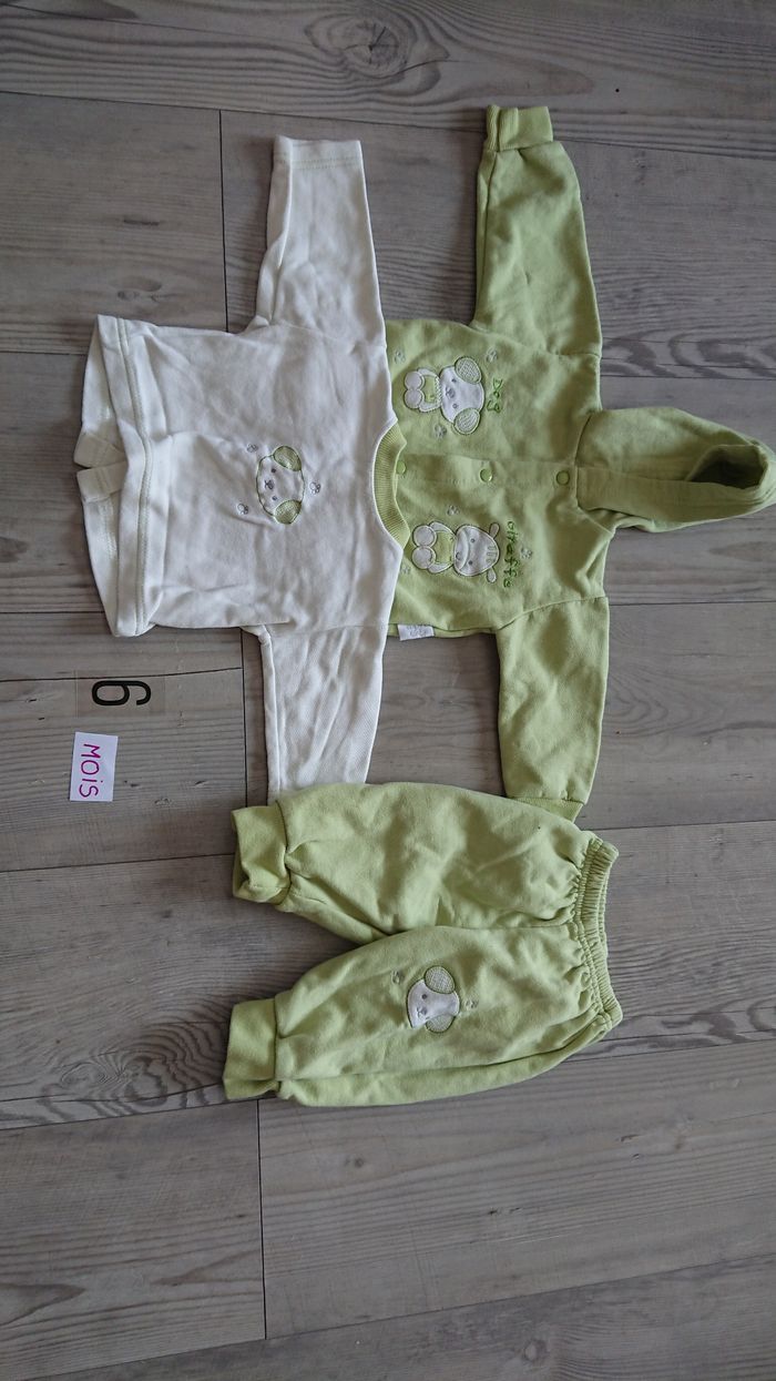 Ensemble jogging avec pantalon pull et gilet De couleur vert pomme et blanc J'ai beaucoup d'autres articles en 6 mois n'hésitez pas à visiter mon dressing.