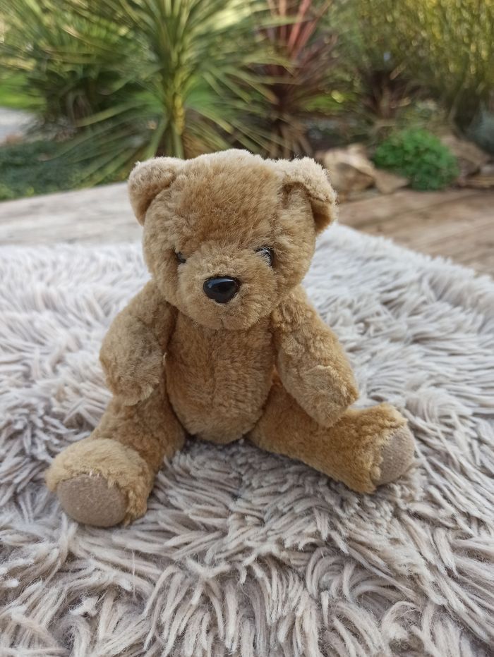 Ours en peluche 21 cm Bon état général Devait avoir un chapeau sur la tête maintenue par des scratchs #liibyjeux #peluche #nounours #doudou #ours