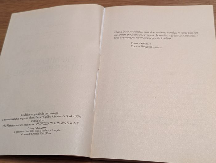 Journal d'une princesse volume 2 Premiers pas d'une princesse, bon général, petit format, par Meg Cabot, idéal adolescente, 253 pages. Couverture comportant des traces et défauts, voir photos.