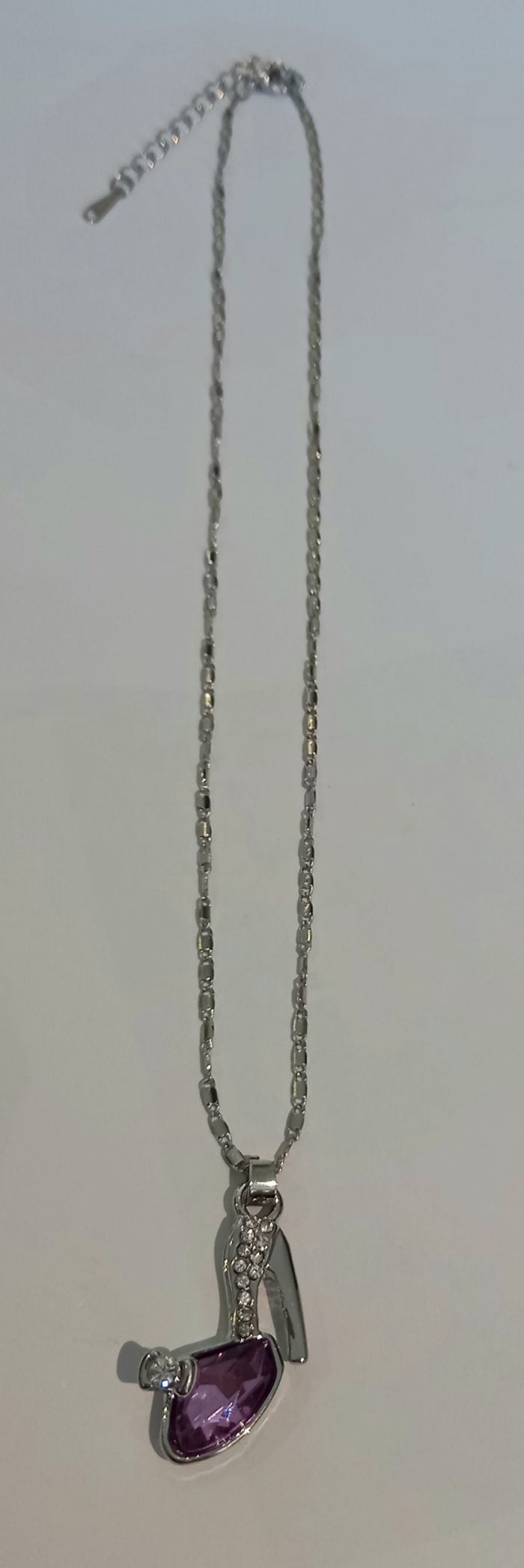 Collier pendentif escarpins  argenté parme. - photo numéro 1