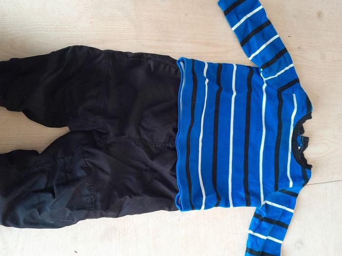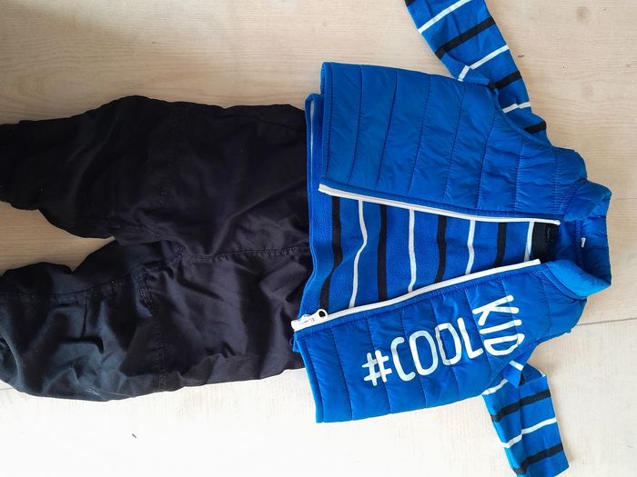 Ensemble avec pantalon doublé, tee-shirt manches longues et doudoune sans manche, très bon état