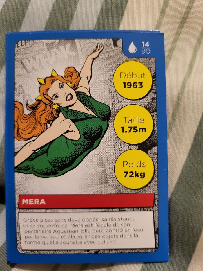 Carte Héros DC Auchan 2022 n° 14 /90 Mera J'ai bcp de cartes en double, n'hésitez pas à me demander si je ne les ai pas.