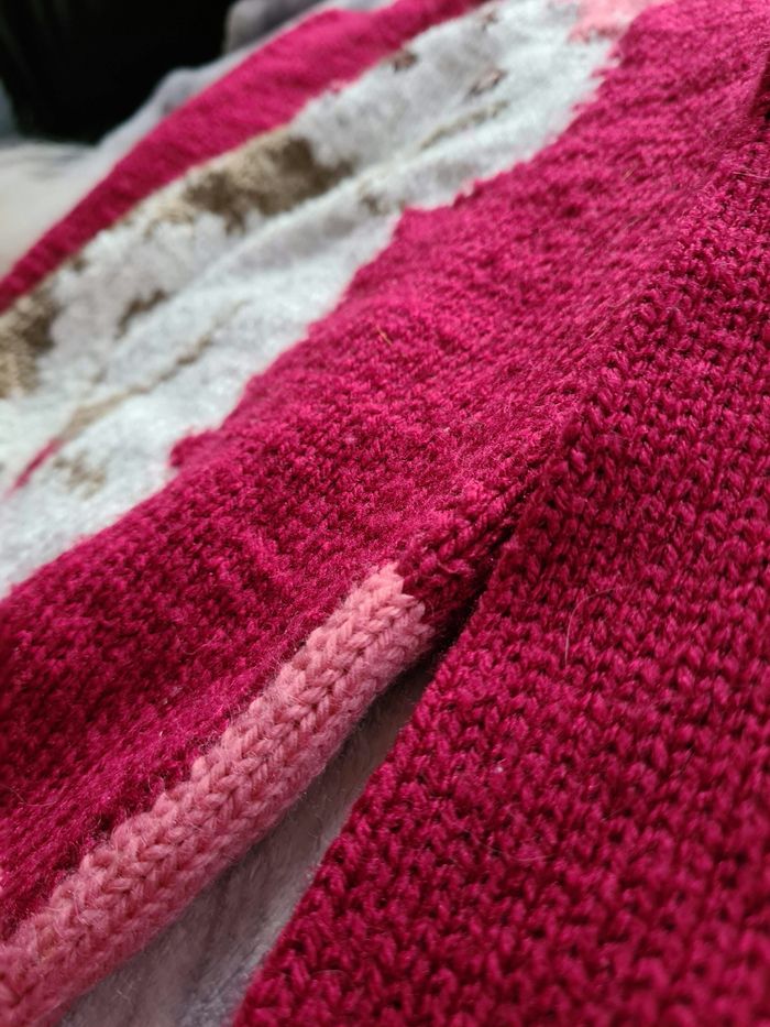 Bonjour Vends pull fait main avec petit chien et noeud rose Couleur frambois et rose