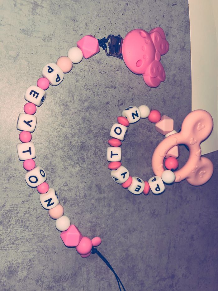 Attache tétine et anneau dentition fait main sur demande , personnalisée 20€