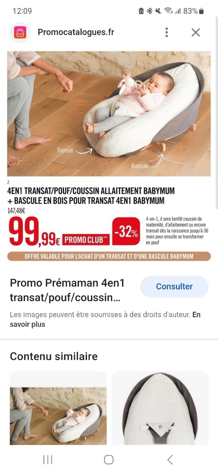 Transat, pouf, coussin d'allaitement, bascule. Babymum