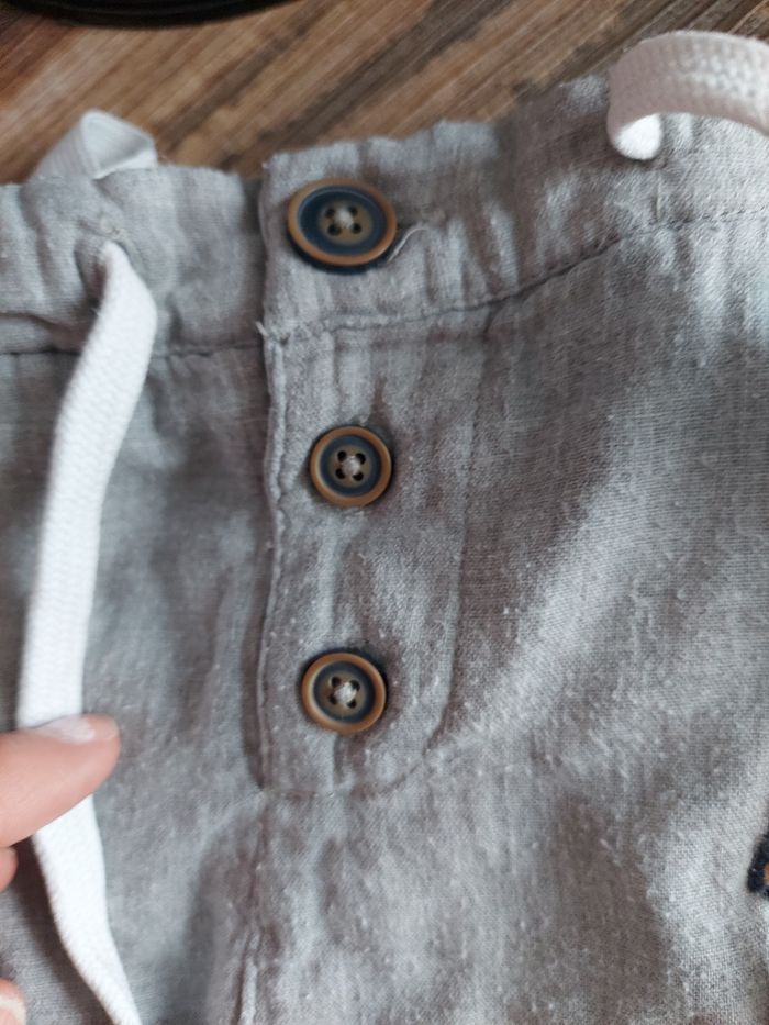 📌Pantalon gaze de coton doublé, 6 mois, tape a l oeil, bon etat 2 taches ton sur ton au genoux du au 4 pattes, quelques bouloches