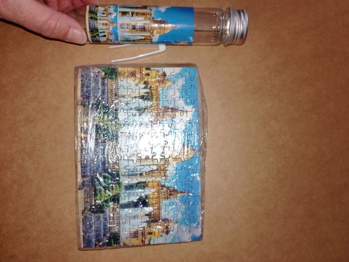 Micro puzzle avec pince plastique 15x10 cm Complet 150 pièces Vendu avec son tube pour ranger les pièces (Vendu fait et plastifié NON COLLÉ juste pour montrer qu'il est complet)