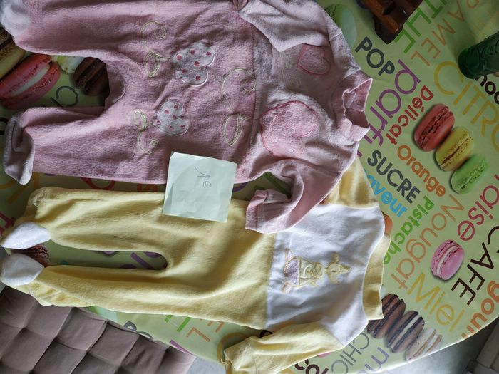 Lot de deux pyjama en 3 mois. Le rose kitchoun. Le jaune sans marque. État porté et lavé plusieurs fois #3mois_severinedubois40990