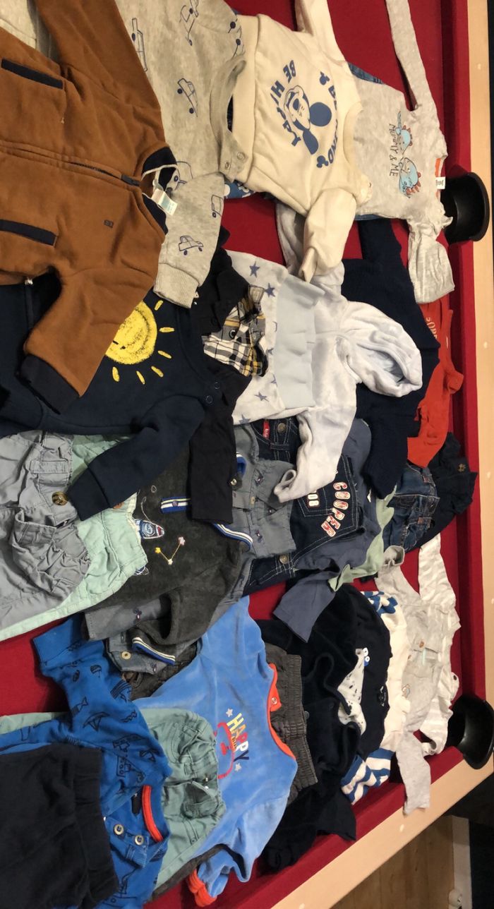 Vend 69 vêtements bébé 29 vêtements en 0-3 mois 9 vêtements en 9 mois 29 vêtements en 12 mois