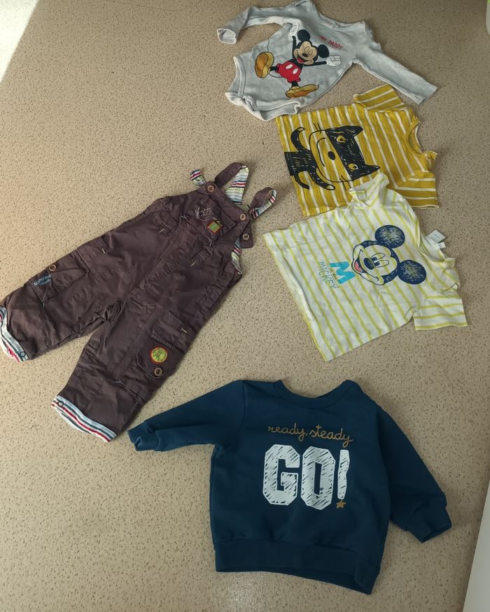 Composé De 4 Tee-shirt manches courtes 1 body manches longues 1 pull Est une salopette Le tout en bonne état