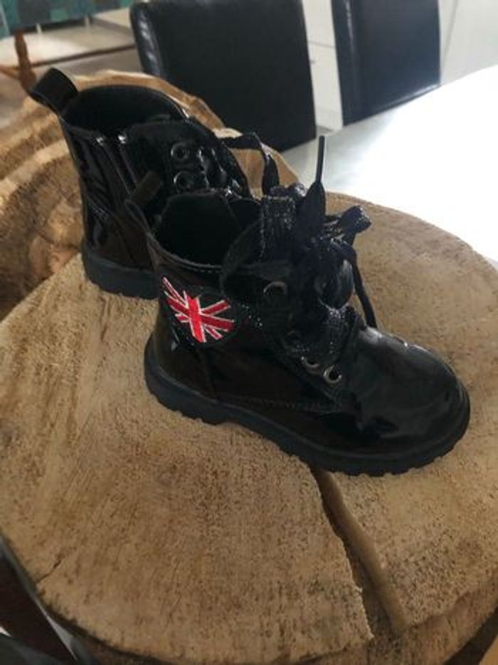BOTTILLONS VERNIS AVEC BADGE COEUR MOTIF DRAPEAU LONDONIEN - photo numéro 1