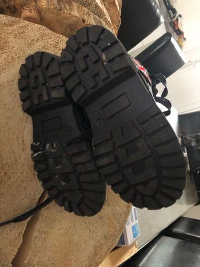 Bottillons vernis. Ouverture à lacets et zip sur le côté. Badge avec drapeau sur le côté. Semelle à talon décroché et crampons. Oeillets métalliques. Languette au dos pour les enfiler facilement. Tige: synthétique. Doublure intérieure: synthétique. Semelle intérieure: cuir. Semelle extérieure: synthétique.