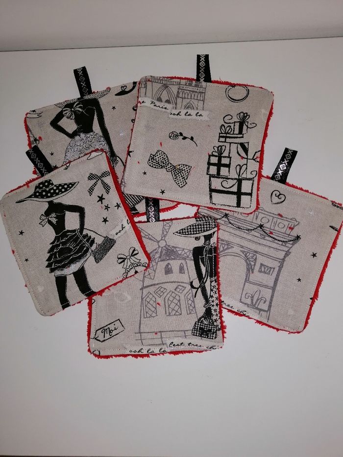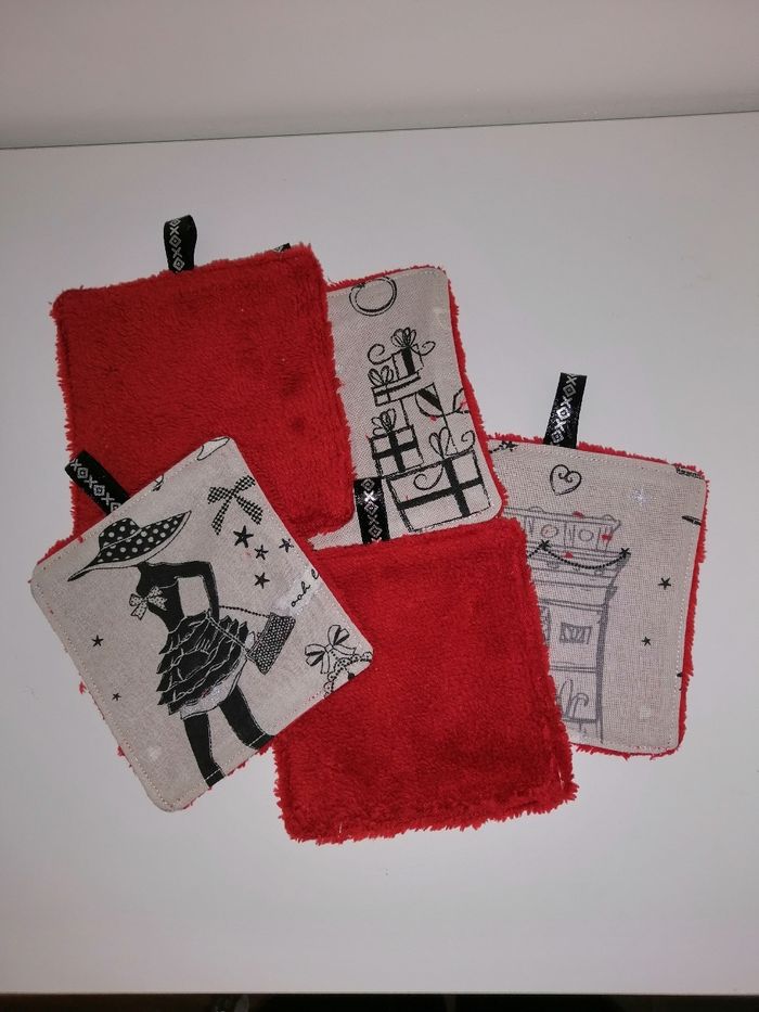 5 belles lingettes glamour avec son éponge bambou rouge ❤️ N'hésitez pas à me contacter pour plus d'informations et avoir les vôtres. Made in france 🇫🇷Handmade by BabyDolls création 🦁