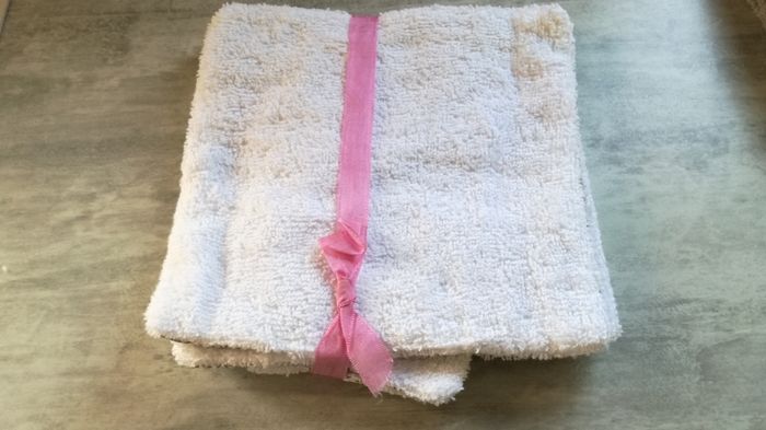 Lot de 3 serviettes invités et 5 lingettes Une face imprimée doré et une face en éponge blanche Articles neufs