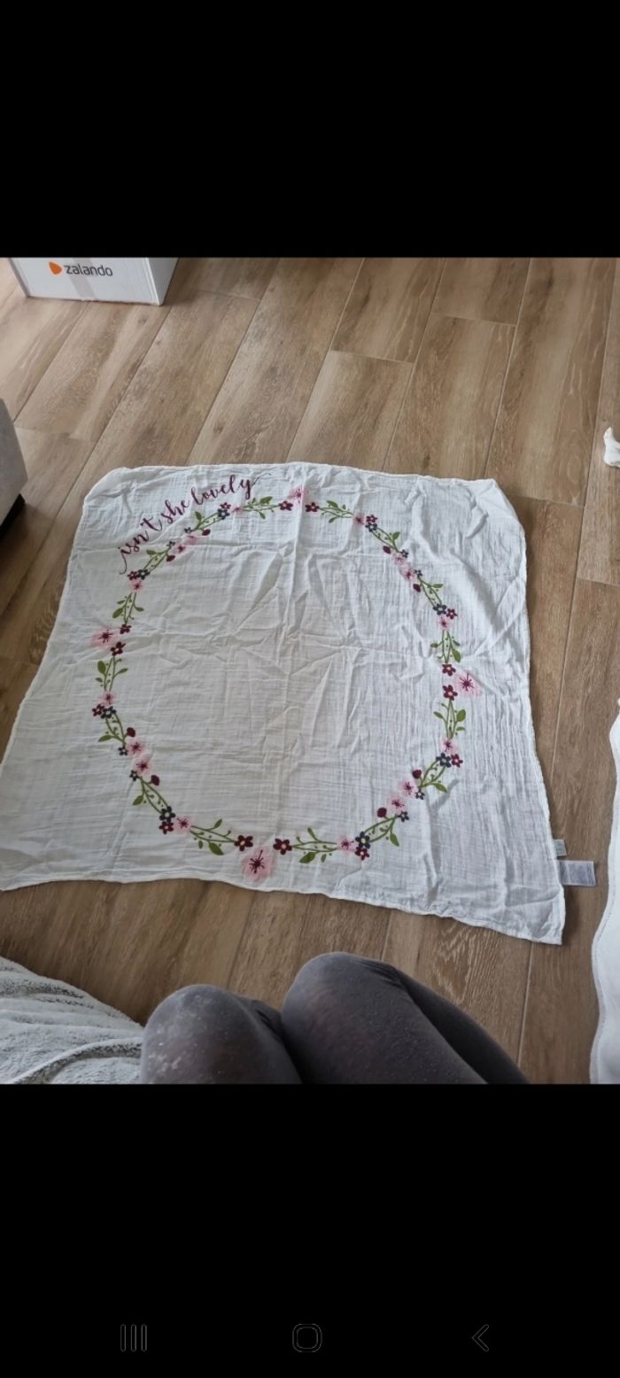 Le set contient 1 drap et 7 cartes doubles. Le draps contient de jolis imprimés: idéal pour réaliser les plus belles photos de Bébé. Utilisez aussi le drap comme couverture d'emmaillotage, essuie ou couverture! En coton de mousseline ultradoux. Dimensions: 100 x 100 cm.