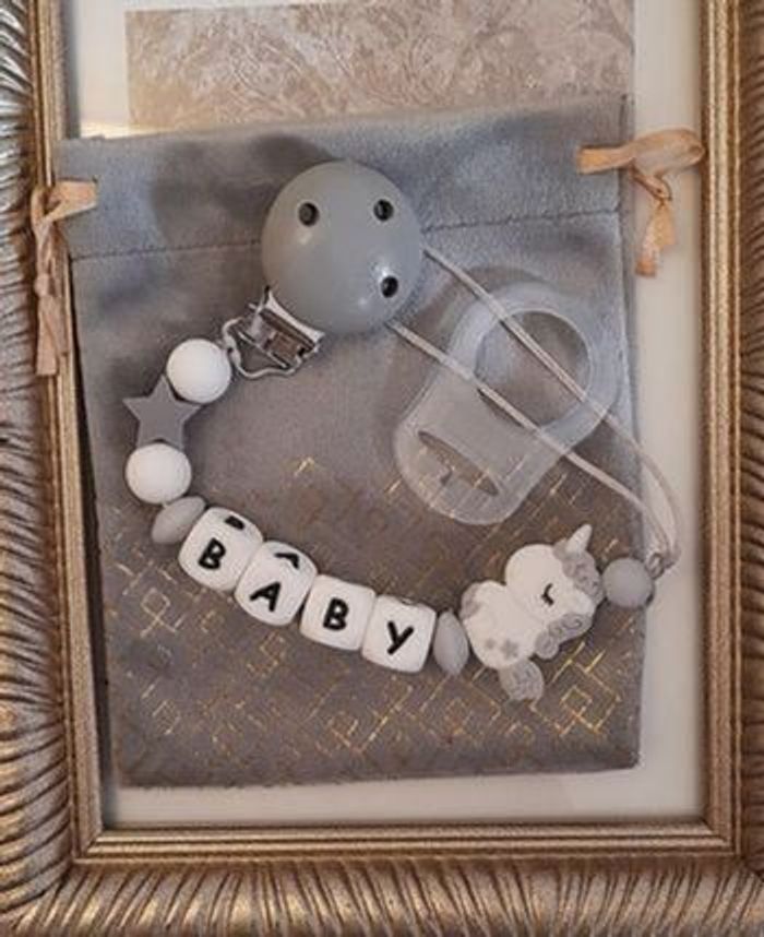 Attache tétine personnalisé avec adaptateur et pochette cadeau - photo numéro 1