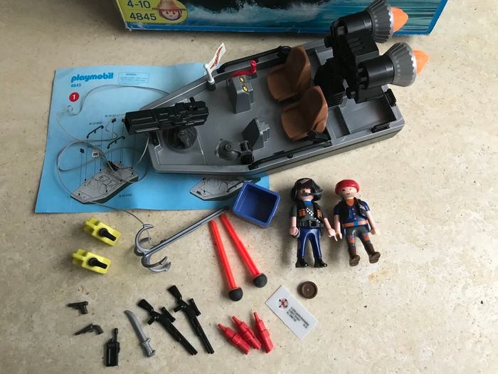 JEU "PLAYMOBIL - BATEAU A CANON ET VOLEURS". Playmobil 4845. Jeu d'occasion en très bon état. Complet à 100 % (il ne manque pas la moindre petite pièce) avec notice et boîte d'origine (la boîte est un peu usée).