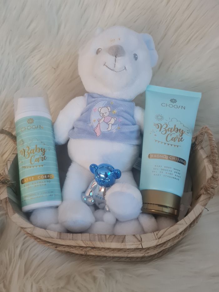 Bonjour Vend coffret naissance idéal cadeau 🎊Cofferet de naissance 🎊Un parfum ourson bleu 15ML 🎊Lait de corps bio150ml 🎊Gel douche bio 200ml 🎊Un doudou