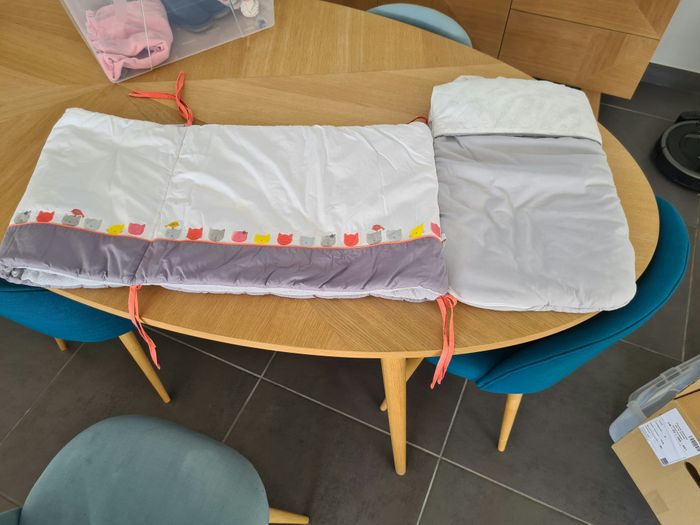 Tour de lit Obaïbi et nid d'ange DPAM en très bon état. Il y a juste 1 ficelle que j'ai remis et la couleur n'ai pas la même. Sinon c'est comme neuf