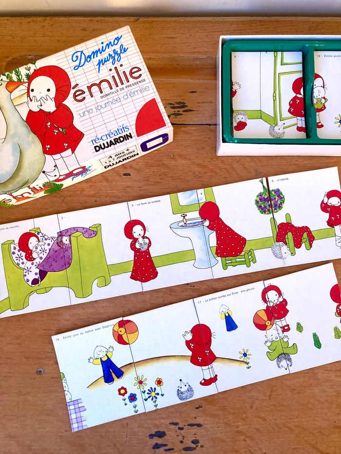 Jeu vintage fabriqué en France. Jeu pépite qui permet de remettre en ordre des images-dominos séquentielles retraçant une journée de la célèbre Émilie, de Domitille de Préssensé. En excellent état, ce jeu permet un super travail autour de la chronologie et de l’expression lexicale et syntaxique. Une pépite ! Et les illustrations …🤩! #jeuvintage #emilie #domitilledepressense #orthophonie #logopédie #neuropsychologie #orthopedagogie #educationspecialisee #educateurdejeunesenfants #psychologie #enseignement #enseignementspecialise #ief #coschooling #ergothérapie #psychomotricité #assistantematernelle #assmat #animation #lexique #syntaxe #chronologie #langage #retarddelangage #retarddeparole