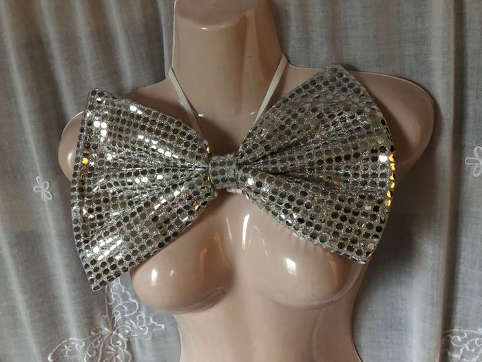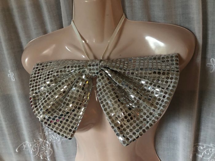 Pour déguisement grand noeud papillon sequins argentés - photo numéro 1