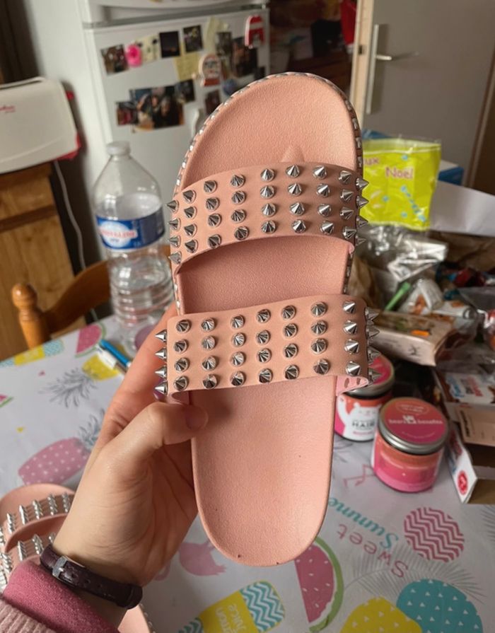 Claquettes roses à clous, taille 37, Clarosa. - photo numéro 4