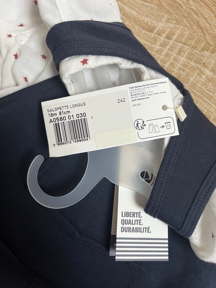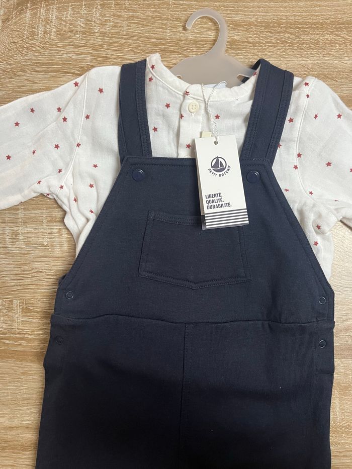 Ensemble neuf Petit Bateau, Chemise + Salopette - photo numéro 2