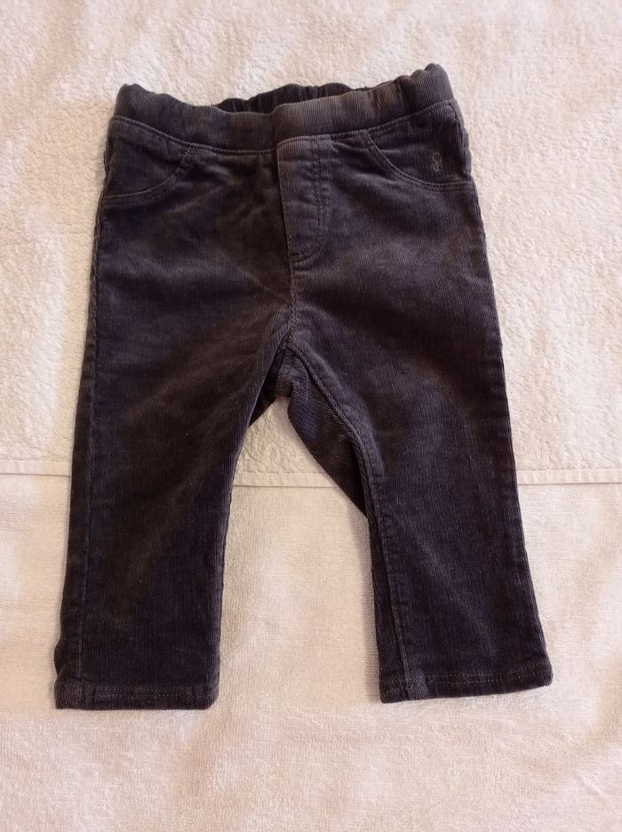 Pantalon gris en velours pour petit garçon marque Okaïdi taille 12 mois 74 cm