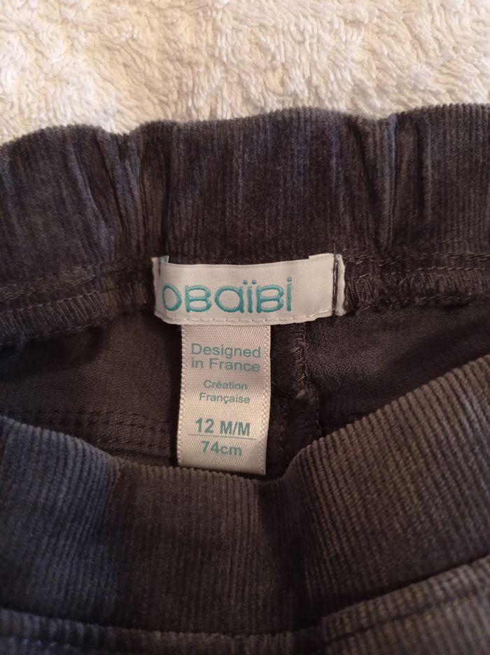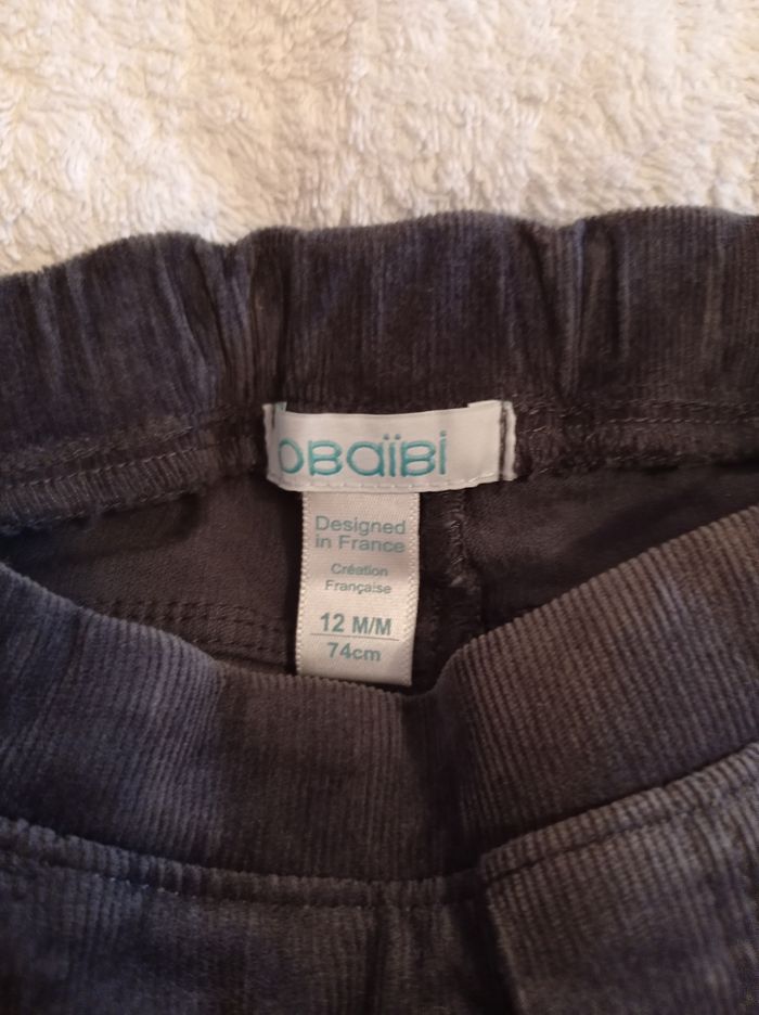 Marque Okaïdi taille 12 mois 74 cm porter deux fois pantalon en velours gris élastique à la taille voir photo réglage bouton